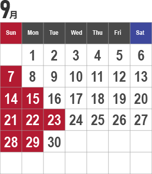 赤の枠が休校になります